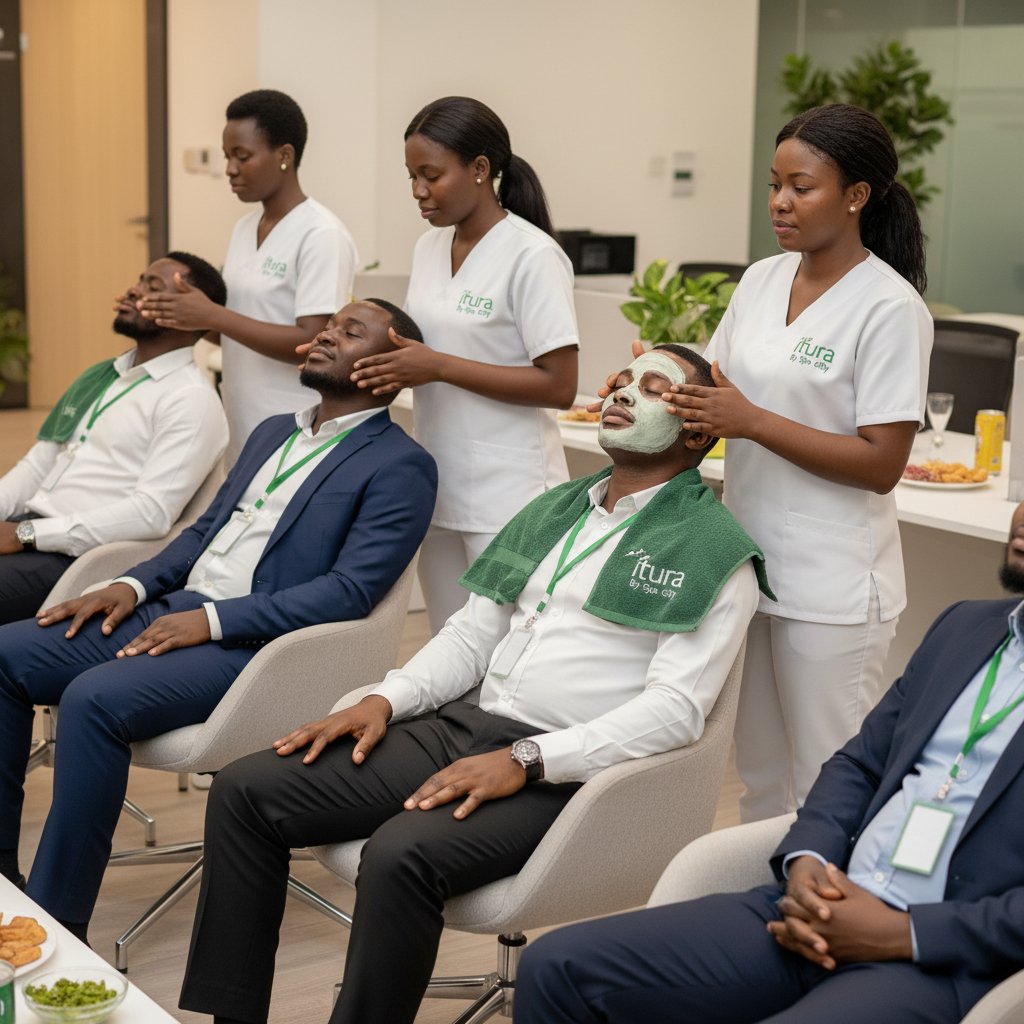 Our Corporate Spa service is designed to help organizations care for their most valuable asset, their people. Whether it’s an office wellness day, a corporate retreat, a conference, or an employee appreciation event, Itura helps your team relax, recharge, and refocus right where they work.
